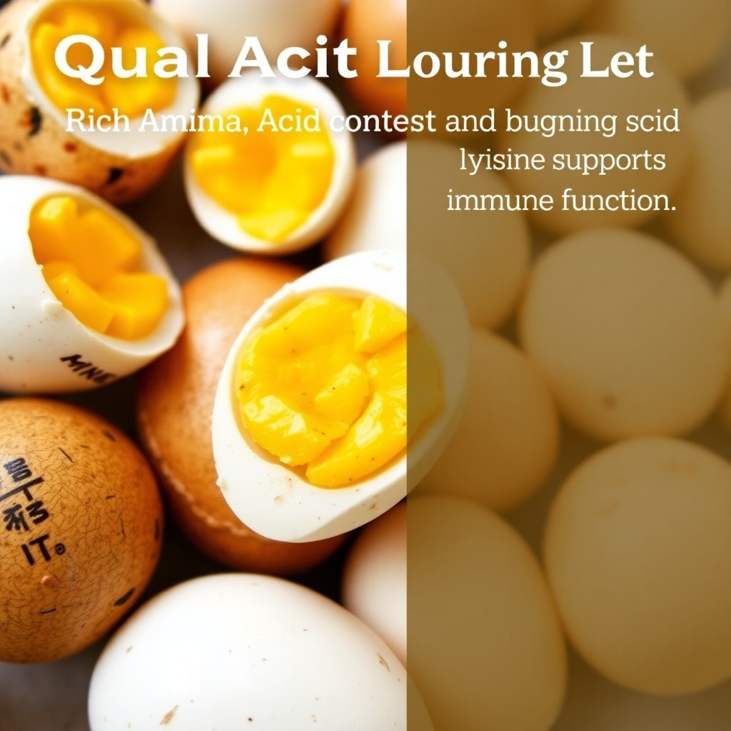 تخم بلدرچین دارای اسیدهای آمینه بسیاری از جمله لیزین است که میتواند عملکرد سیستم ایمنی را بهبود بخشد. لیزین که نوعی اسید آمینه است می تواند به تولید پادتن کمک کرده و از عملکرد سیستم ایمنی پشتیبانی کند.