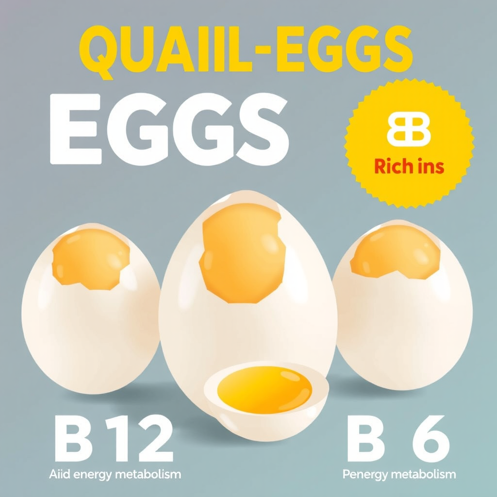تخم بلدرچین حاوی مواد مغذی متعدد از جمله ویتامین B کمپلکس است که با کمک به متابولیسم سالم به حفظ سطح انرژی کمک میکند ویتامین B کمپلکس شامل ویتامین B12 و B6 می شود که از آنزیم های متابولیک محسوب می شوند و نقش مهمی در تولید انرژی ایفا می کنند